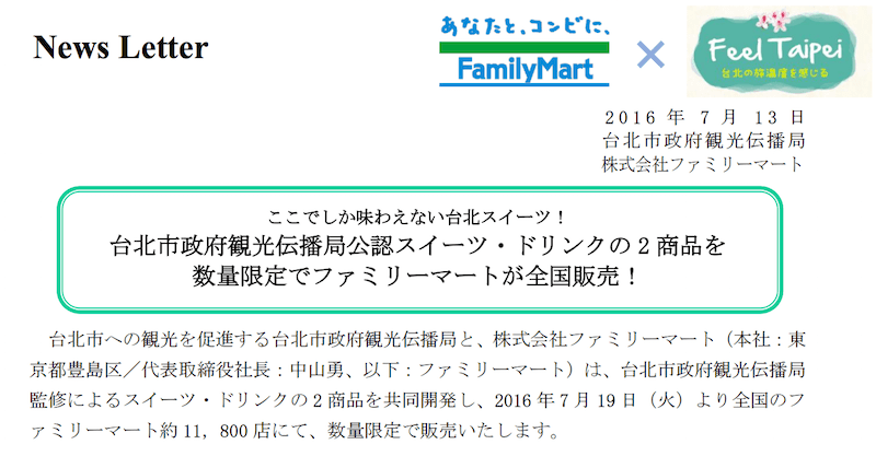 ファミリーマートが台湾市政府観光伝播局と共同開発したスイーツとドリンクが、全国のファミリーマートで販売を開始しています。