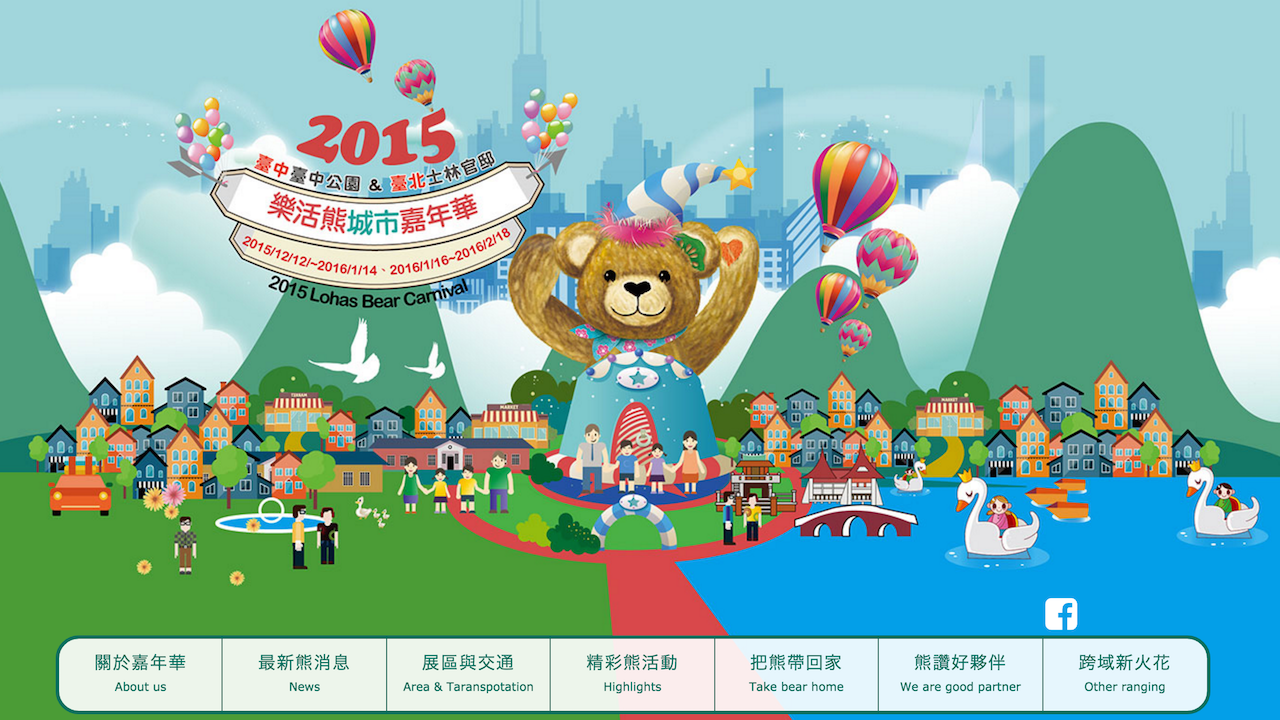2015年12月12日から2016年1月14日まで台中市内にある台中公園を中心に、台中駅、台中郵便局、台中市政府、台湾太陽餅博物館、緑柳町文旅(リローディング ホテル)などでテディベアの屋外展示が行われています。
