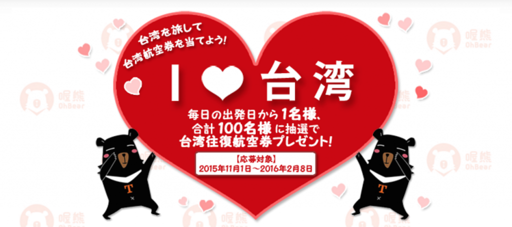 台湾往復航空券が当たる!!「I LOVE台湾キャンペーン」開催中
